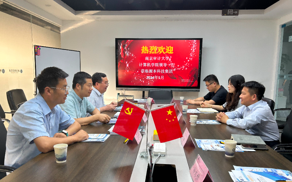 为贯彻落实党中央、国务院关于高校毕业生就业工作的决策部署,全力促进毕业生高质量就业和产教融合开展,2024年5月15日下午,南京审计大学计算机学院副院长郭红建带领计算机系主任崔应留、信管系主任姚兴山以及吕从东老师来到江苏28圈 28圈科技集团召开“访企拓岗产教融合”专项行动。