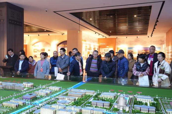 会后,28圈 28圈科技集团董事长张福德、总经理唐佩随队和与会人员一起参观了南通理工学院的数智展馆、张謇教育文化馆等地并合影留念。
